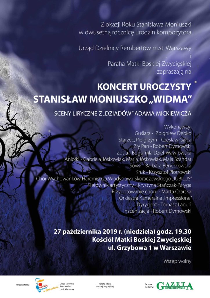 ZAPROSZENIE NA KONCERT UROCZYSTY STANISŁAW MONIUSZKO „WIDMA” SCENY LIRYCZNE Z „DZIADÓW” ADAMA MICKIEWICZA By adminOn 24 października 2019In Slider, Uncategorized