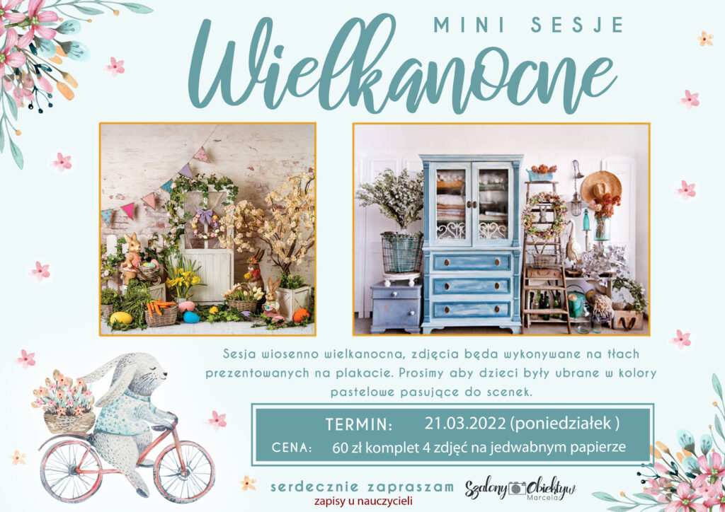 SESJA ZDJĘCIOWA By adminOn 17 marca 2022In Uncategorized Już w najbliższy poniedziałek 21.03 zapraszamy na sesje wiosenną. Zapisy jak zawsze mailowo do wychowawców grup.