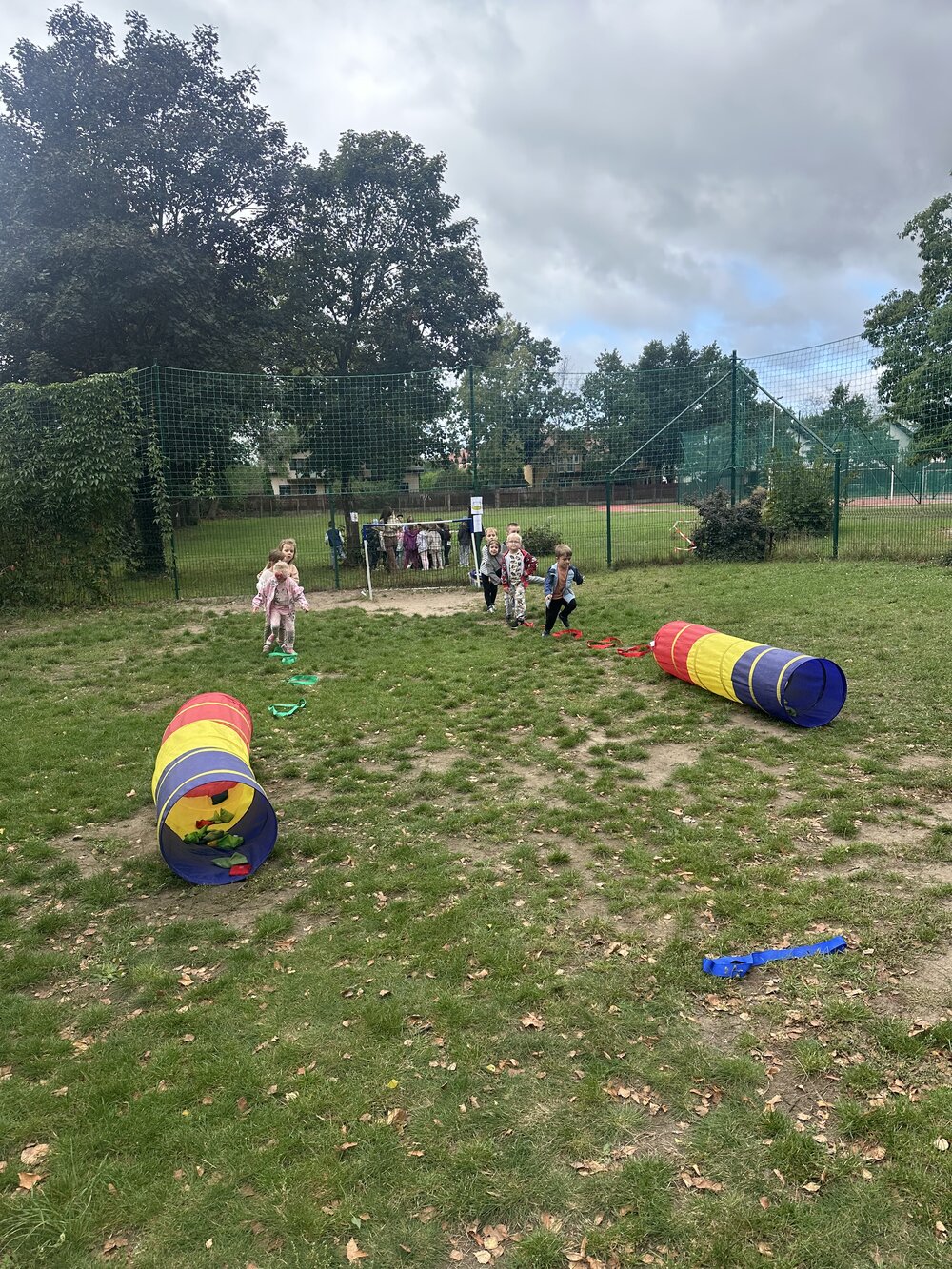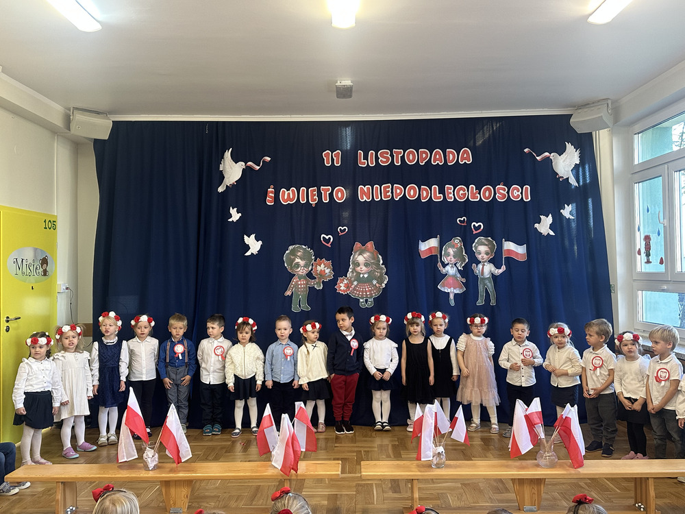 W naszym przedszkolu odbyła się niezwykła gra terenowa z okazji zbliżającego się Święta Niepodległości. Plac zabaw na ten dzień zamienił się w pełen przygód i radości teren patriotycznej wyprawy. Dzieci z entuzjazmem przemierzały stacje z zadaniami, ucząc się i bawiąc jednocześnie. Dzięki zaangażowaniu rodziców, nauczycieli i dzieci atmosfera była pełna radości, współpracy i patriotycznego ducha. Gra terenowa stała się wspaniałą okazją, by w przystępny sposób przybliżyć najmłodszym znaczenie zbliżającego się święta.