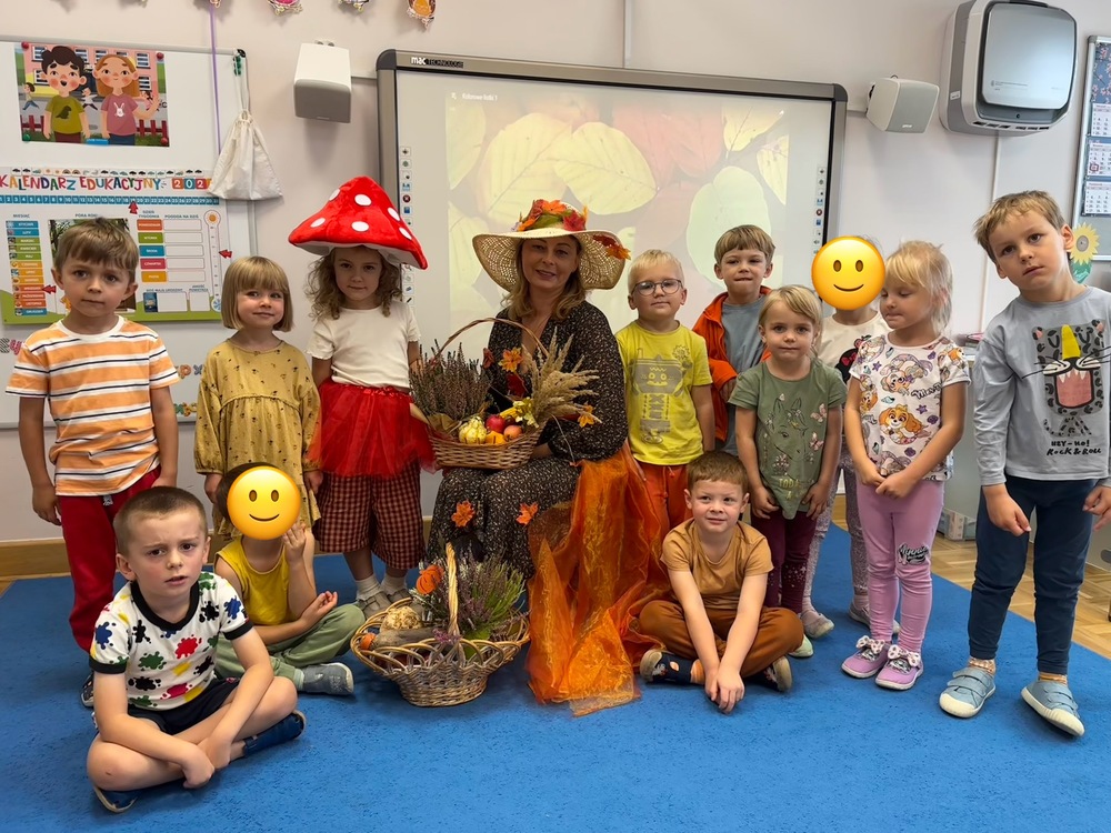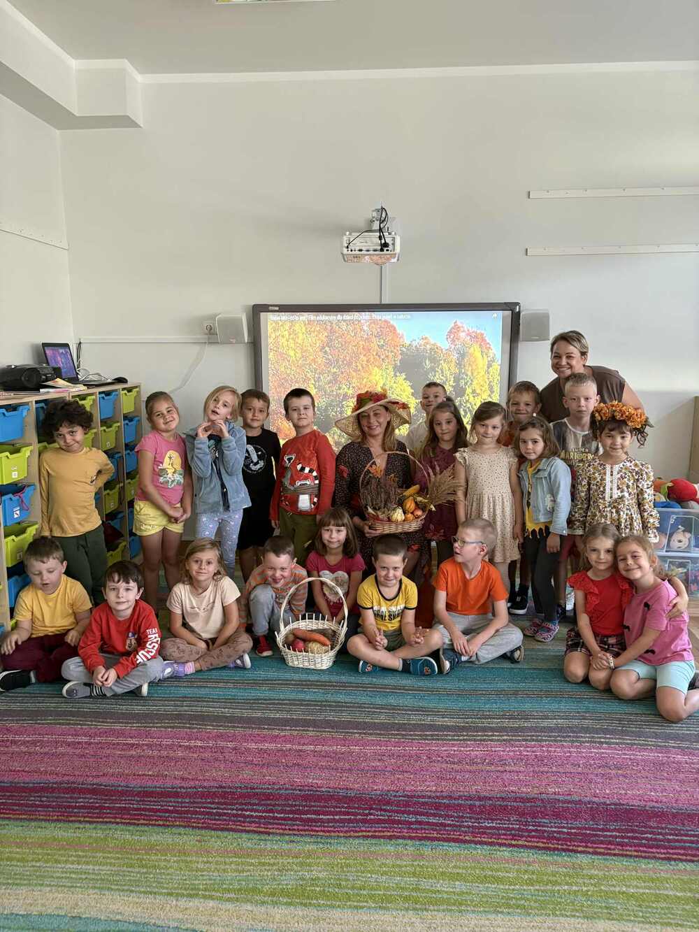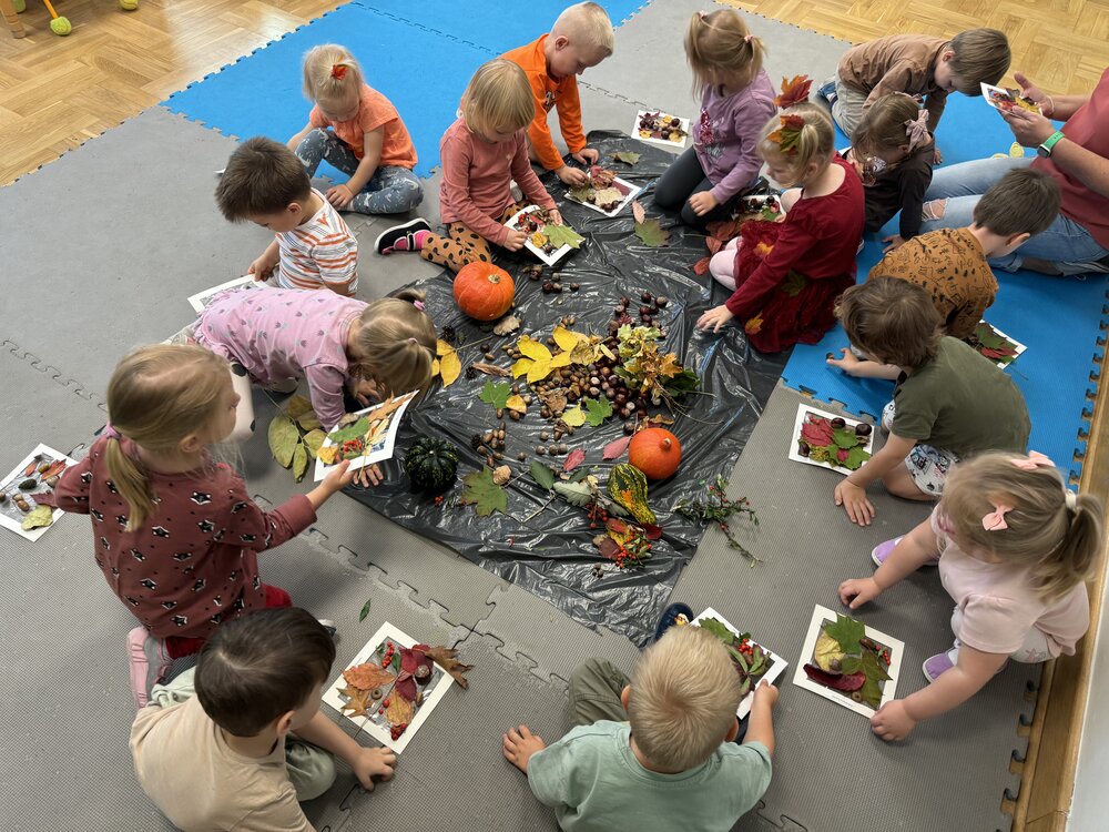 W naszym przedszkolu obchodziliśmy początek astronomicznej jesieni. Dzieci tańczyły w rytmie wirujących liści i radośnie odkrywały uroki tej kolorowej pory roku. Podziwialiśmy jesienne skarby przyniesione przez najmłodszych – kasztany, żołędzie i liście w złotych barwach. Następnie wspólnie wyszliśmy na świeże powietrze, by stworzyć barwny obraz z przepięknych darów natury. To był pełen uśmiechów, zabawy i twórczych pomysłów dzień, który na długo pozostanie w naszej pamięci!