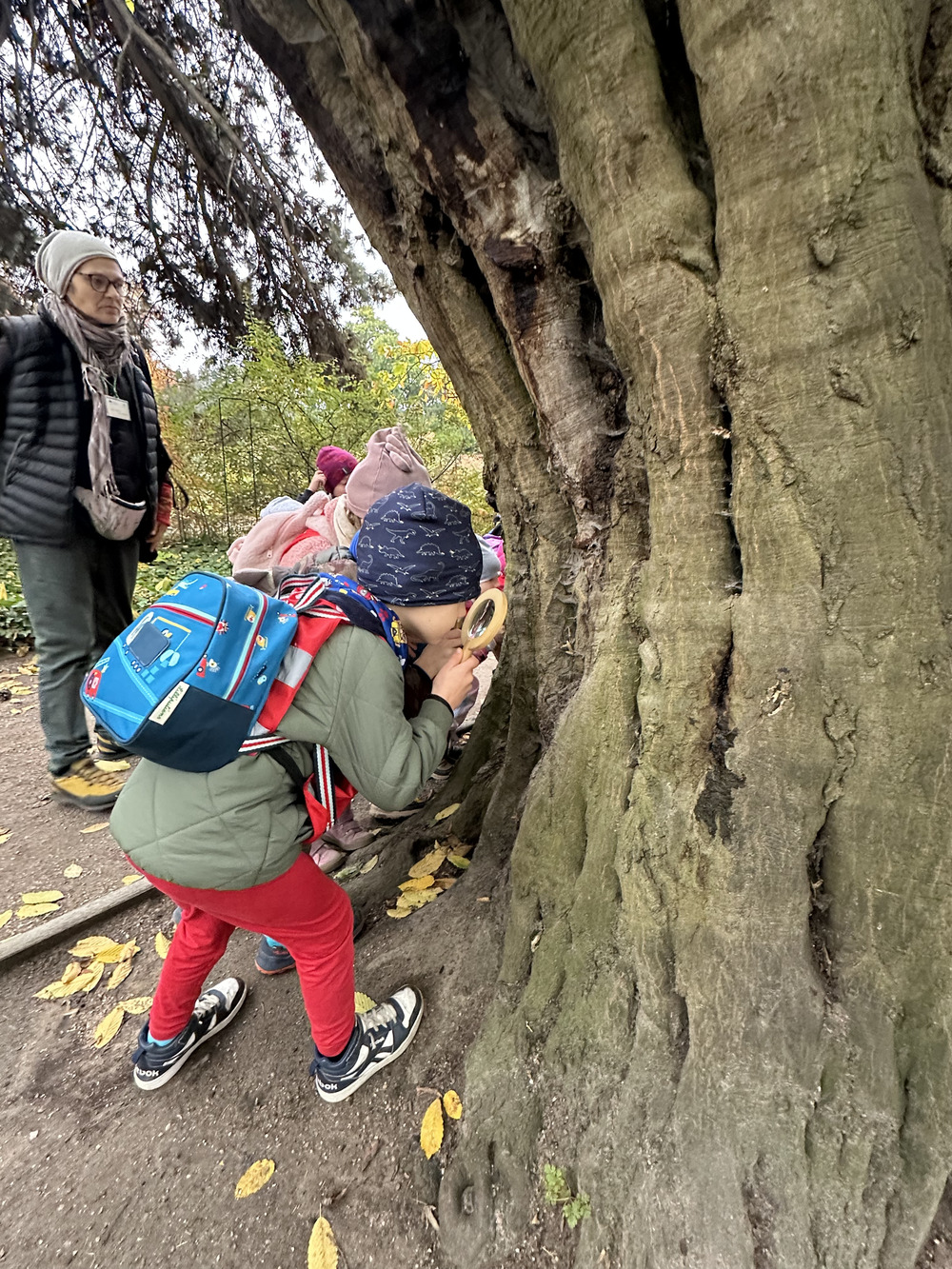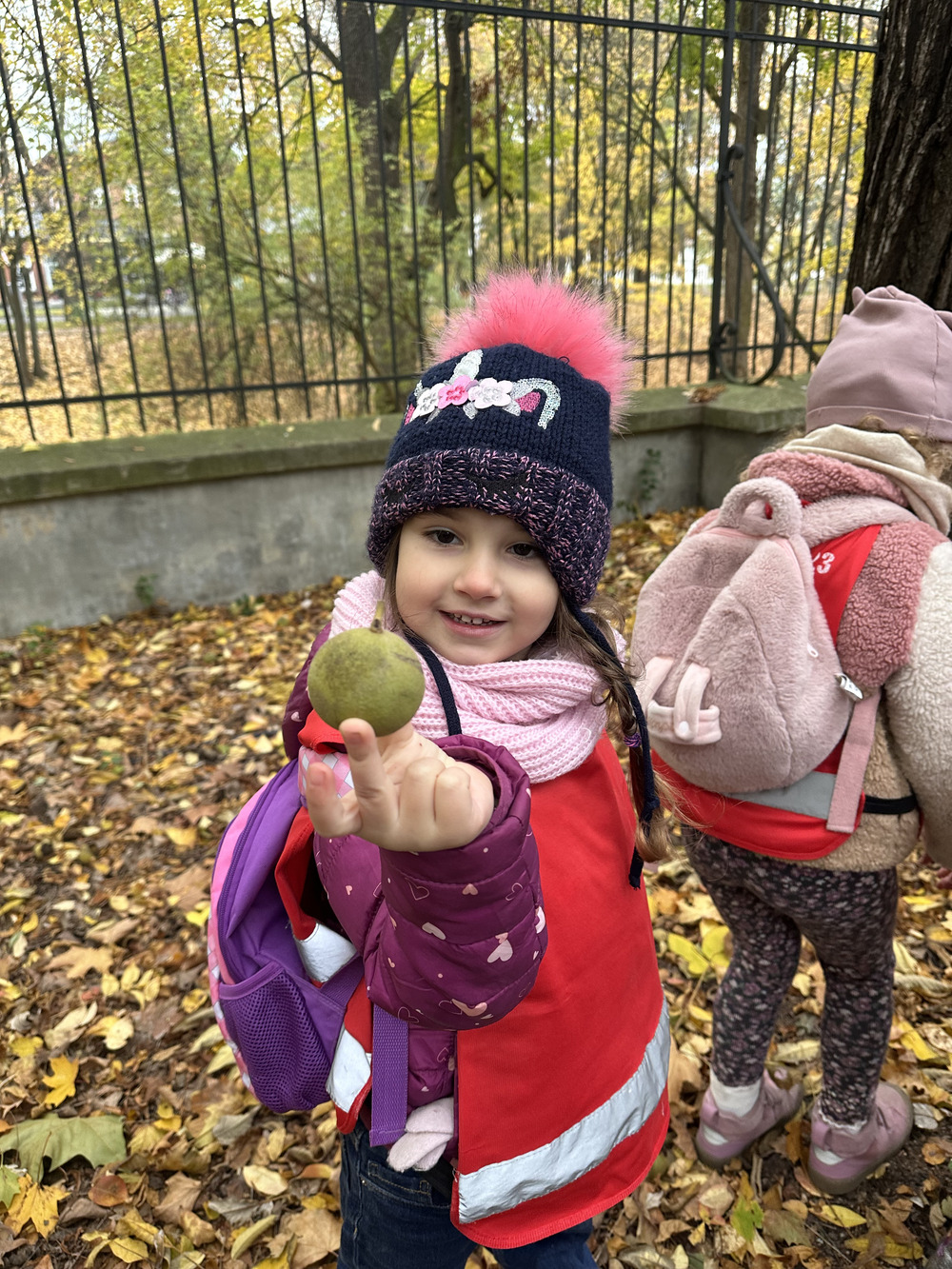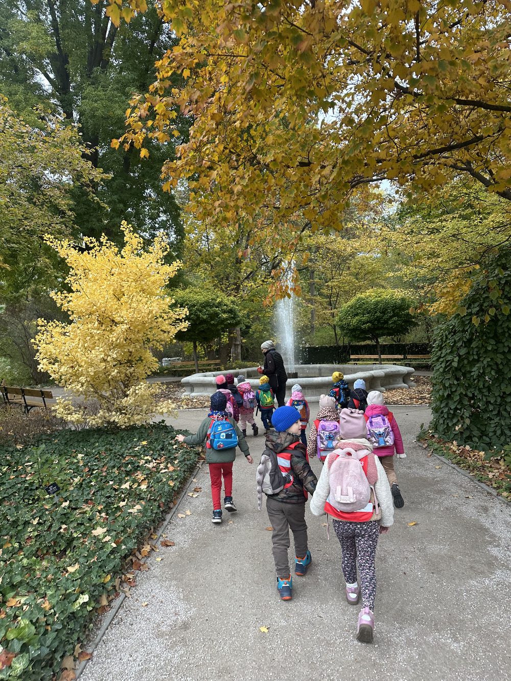 Dzieci z grupy „Sówki” wyruszyły na jesienne poszukiwania do Ogrodu Botanicznego UW! Podczas zajęć rozpoznawały oznaki jesieni w przyrodzie – oglądały kolorowe liście, kasztany i żołędzie. Rozmawiały o zmianach pogody i o tym, jak zwierzęta przygotowują się do zimy. Zajęcia „Na tropie Jesieni” były pełne radości, nauki i jesiennych kolorów!
