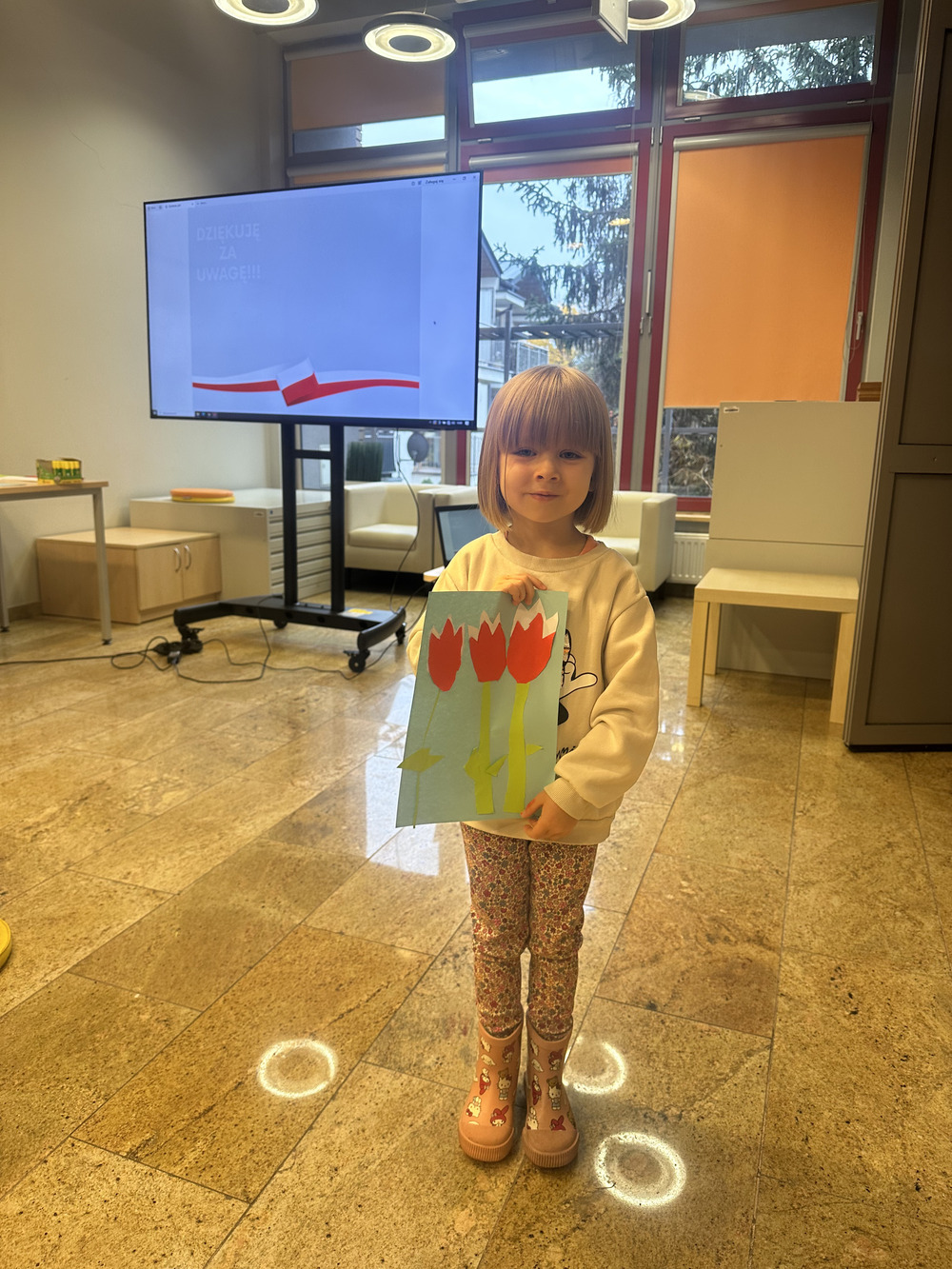 W dniu 03.11 dzieci z grupy „Sówki” wybrały się do biblioteki na zajęcia pt. „Symbole narodowe”. Podczas spotkania poznały znaczenie flagi, godła i hymnu, a także rozmawiały o tym, czym jest patriotyzm. Na zakończenie zajęć wykonały patriotyczne tulipany w barwach narodowych. Zajęcia przebiegły w miłej i twórczej atmosferze, a efekty pracy dzieci można podziwiać na poniższych zdjęciach.