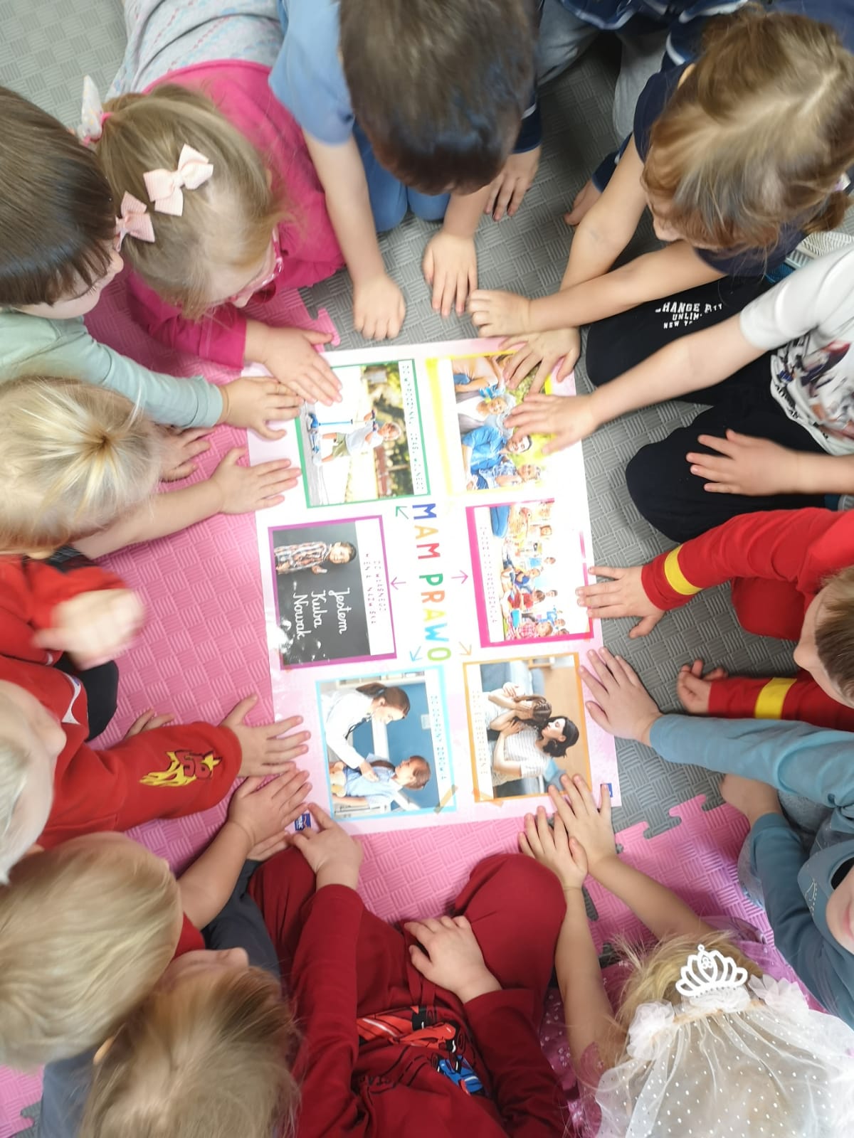 W przedszkolu zorganizowano obchody Międzynarodowego Dnia Praw Dziecka, których celem było zapoznanie dzieci z podstawowymi prawami dziecka w sposób dostosowany do ich wieku i możliwości rozwojowych. Zajęcia miały charakter edukacyjno-wychowawczy oraz integracyjny. Podczas zajęć dzieci uczestniczyły w rozmowach kierowanych, słuchały opowiadań i bajek tematycznych, oglądały materiały edukacyjne oraz brały udział w zabawach dydaktycznych i ruchowych. W przystępnej formie omówiono takie prawa, jak prawo do miłości i bezpieczeństwa, prawo do zabawy, nauki, wyrażania własnych emocji i posiadania własnego zdania. Zajęcia sprzyjały kształtowaniu postaw szacunku wobec siebie i innych, rozwijaniu empatii oraz poczucia przynależności do grupy. Dzieci wykonały również prace plastyczne związane z tematyką praw dziecka, które zostały zaprezentowane na wystawie przedszkolnej. Obchody Międzynarodowego Dnia Praw Dziecka przyczyniły się do podnoszenia świadomości dzieci na temat ich praw oraz wzmocniły poczucie bezpieczeństwa i akceptacji w środowisku przedszkolnym.