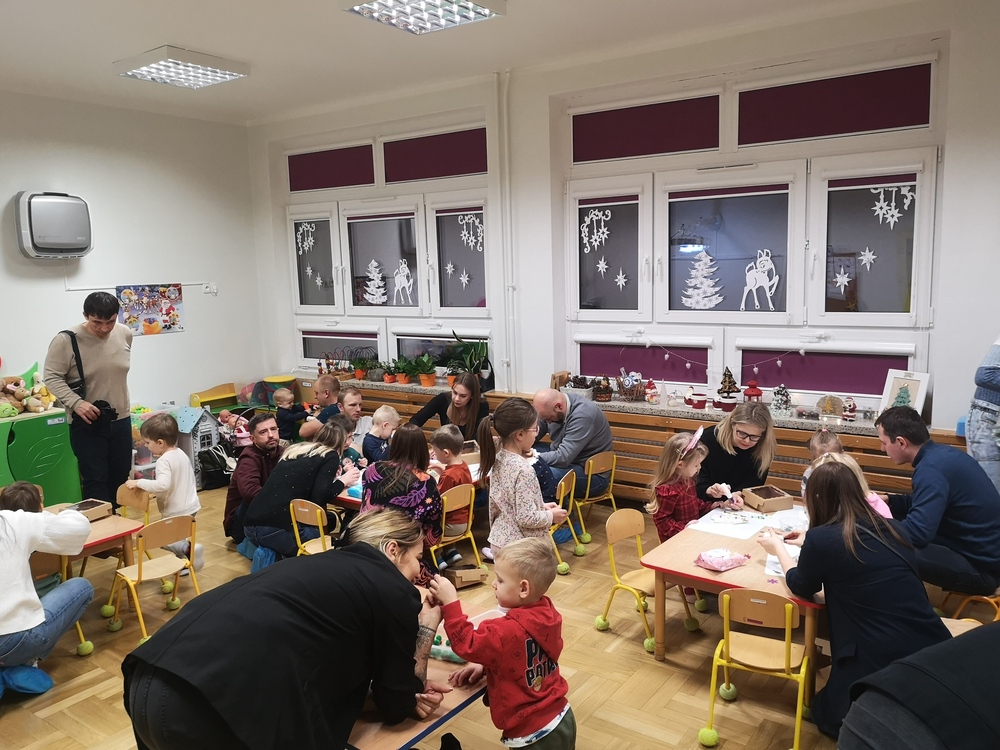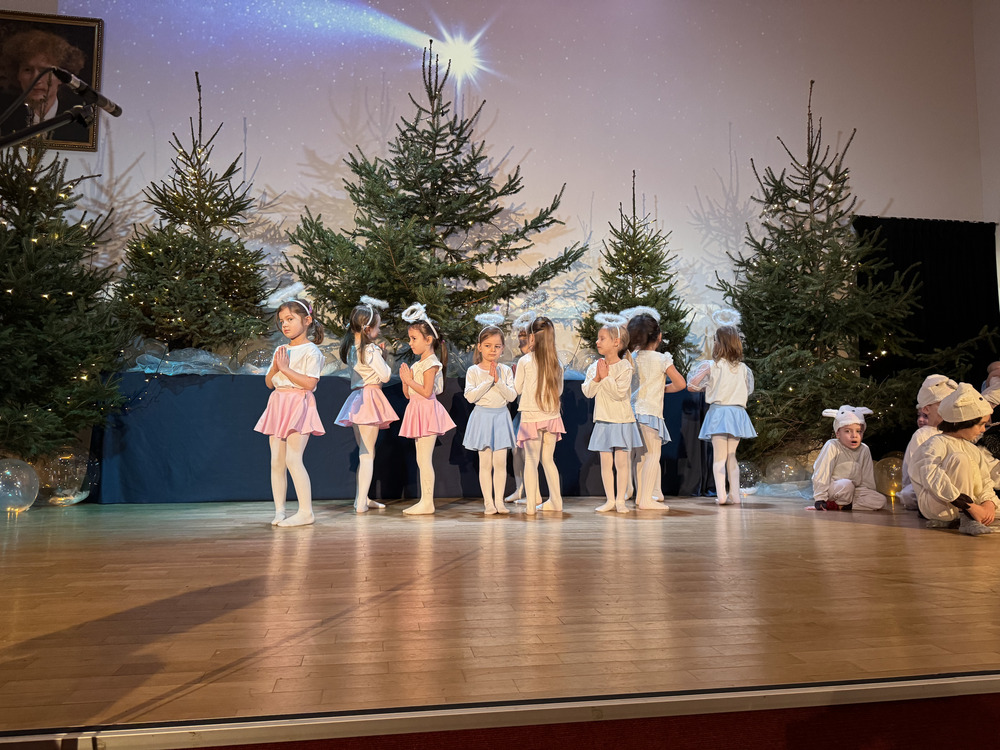 W naszym przedszkolu pielęgnujemy piękne świąteczne tradycje. W tym roku spotkaliśmy się, aby wspólnie śpiewać kolędy i wysłuchać opowieści o narodzeniu Dzieciątka Jezus. To wyjątkowy czas, który daje nam możliwość zatrzymania się, poczucia radości bycia razem. Już po raz trzeci nasze przedszkolaki wzięły udział w akcji „Dzieci – dzieciom”, przygotowując własnoręcznie kartki bożonarodzeniowe dla podopiecznych Warszawskiego Hospicjum dla Dzieci. Dzięki temu uczymy najmłodszych, jak ważne jest dzielenie się dobrem i okazywanie serca innym. Dziękujemy Wam Rodzice za wsparcie i obecność – razem tworzymy atmosferę pełną miłości, życzliwości i świątecznego ciepła.
