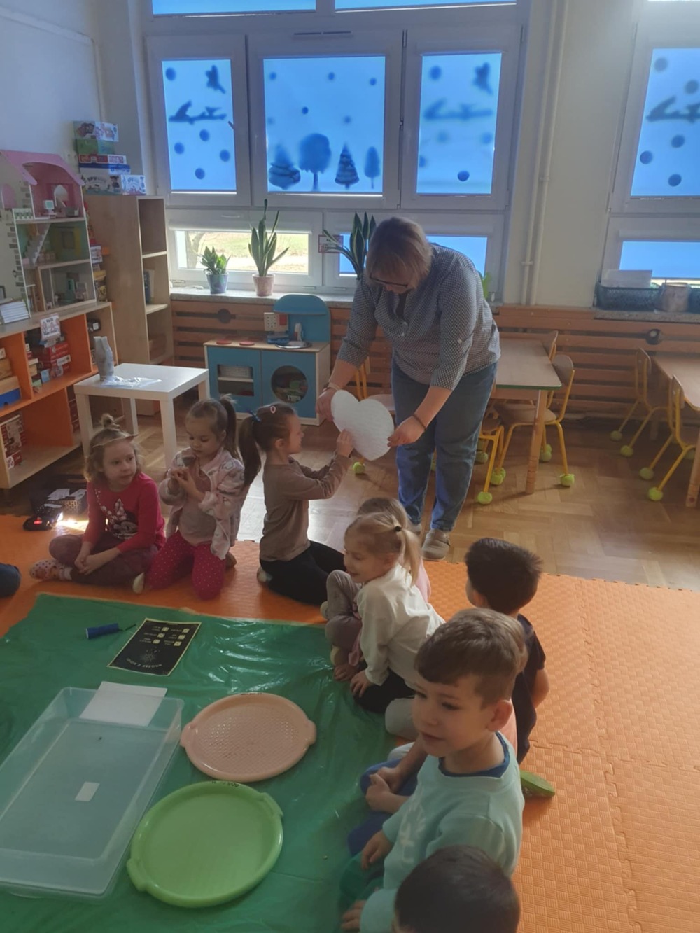 Dnia 22 grudnia w naszym przedszkolu świętowaliśmy powitanie zimy, na którą każde dziecko czeka z utęsknieniem, często z udziałem przebranej za Panią Zimę nauczycielki, która opowiada o zimowych zmianach w przyrodzie i zasadach bezpieczeństwa. Tego dnia, dzieci  witały zimę na różne sposoby, biorąc udział w zimowych zabawach – rozwiązywały zagadki, układały historyjki obrazkowe, śpiewały piosenki i wspólnie tańczyły do zimowych utworów. Brały również udział w zabawach sensorycznych, które dostarczyły wiele uciechy i frajdy. Pierwszy Dzień Zimy to dla nas czas radości, wspólnej zabawy i nauki o tej pięknej porze roku. Czekamy na więcej zimowych przygód!