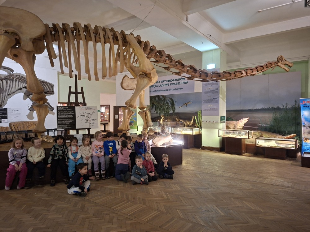 Nasza wycieczka do Muzeum Ewolucji 25 lutego była super wydarzeniem.  Polskie dinozaury są niezwykłe.  Dowiedzieliśmy się mnóstwa fascynujących rzeczy o ogromnych gadach, które kiedyś tupały po naszych ziemiach. Muzeum Ewolucji to nie były tylko makiety – mieliśmy niesamowitą okazję zobaczyć autentyczne kości dinozaurów. Poczuliśmy się jak w prawdziwym filmie.  Poznaliśmy tajniki pracy paleontologa i wiemy już, jak to jest odkrywać sekrety sprzed milionów lat. Przy okazji nauczyliśmy się, że o takie znaleziska trzeba dbać, żeby cieszyły też dzieciaki w przyszłości!