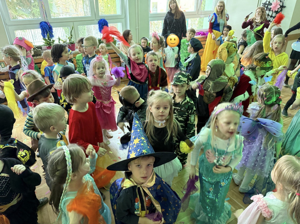 Bal karnawałowy to jedno z najbardziej wyczekiwanych wydarzeń w naszym przedszkolu. Tego dnia sala wypełniła się kolorowymi dekoracjami, radosną muzyką oraz bajkowymi postaciami. Dzieci zaprezentowały się w pięknych, pomysłowych strojach i z wielkim entuzjazmem uczestniczyły w tańcach oraz zabawach ruchowych. Wspólna zabawa dostarczyła wszystkim wielu radosnych emocji, uśmiechu i niezapomnianych wrażeń. Bal karnawałowy był doskonałą okazją do integracji oraz rozwijania dziecięcej kreatywności.
