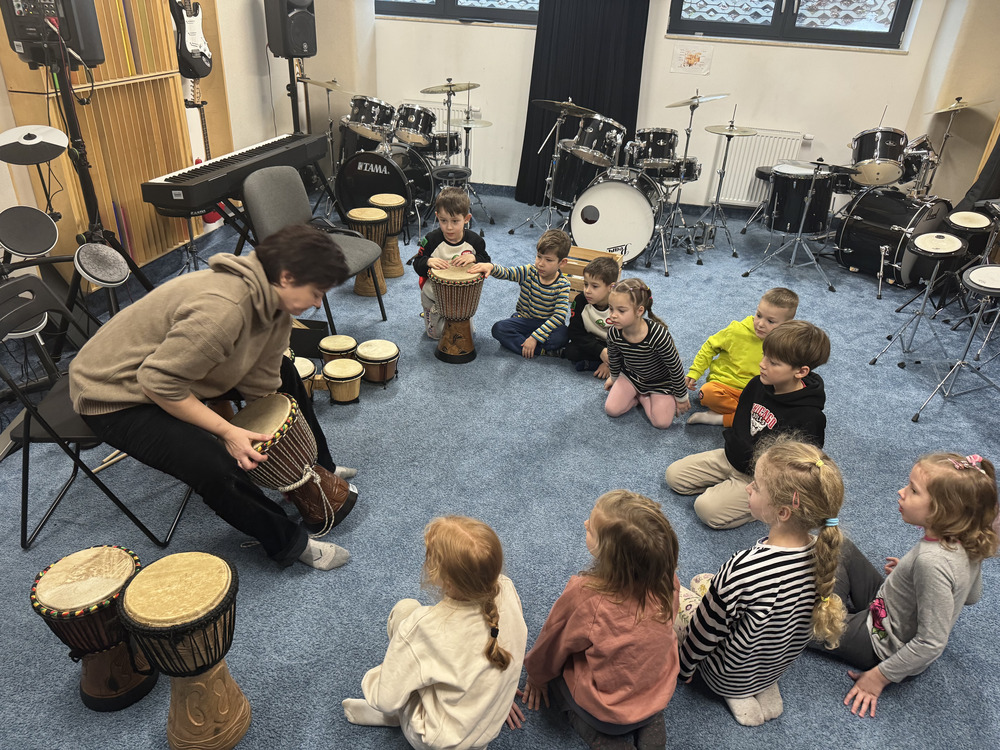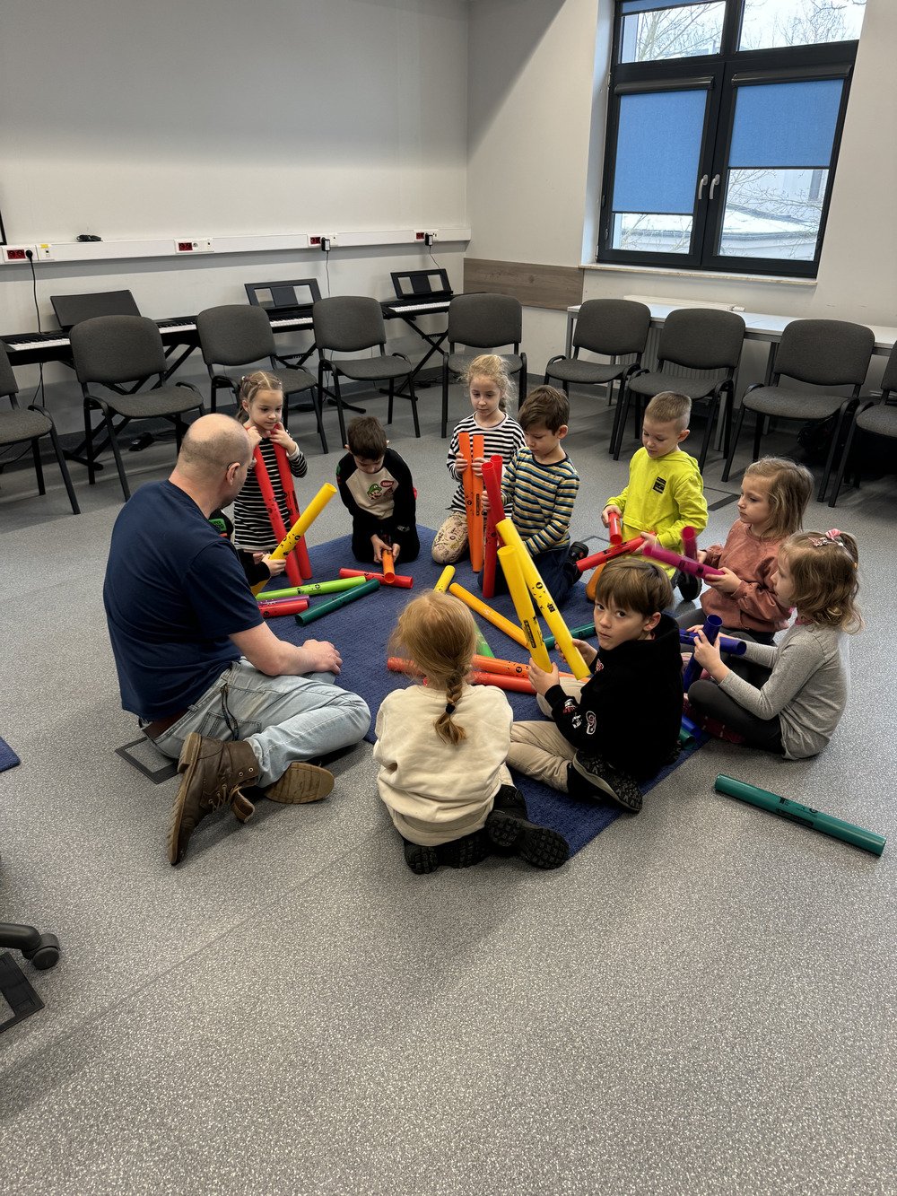 Wycieczka do FabLab „Pobite Gary!” Dzieci z grupy „Pszczółki” uczestniczyły w zajęciach muzycznych. Podczas warsztatów poznały różne instrumenty, eksperymentowały z dźwiękiem oraz brały udział w zabawach rytmicznych. Zajęcia rozwijały wrażliwość muzyczną, poczucie rytmu oraz umiejętność współpracy w grupie.