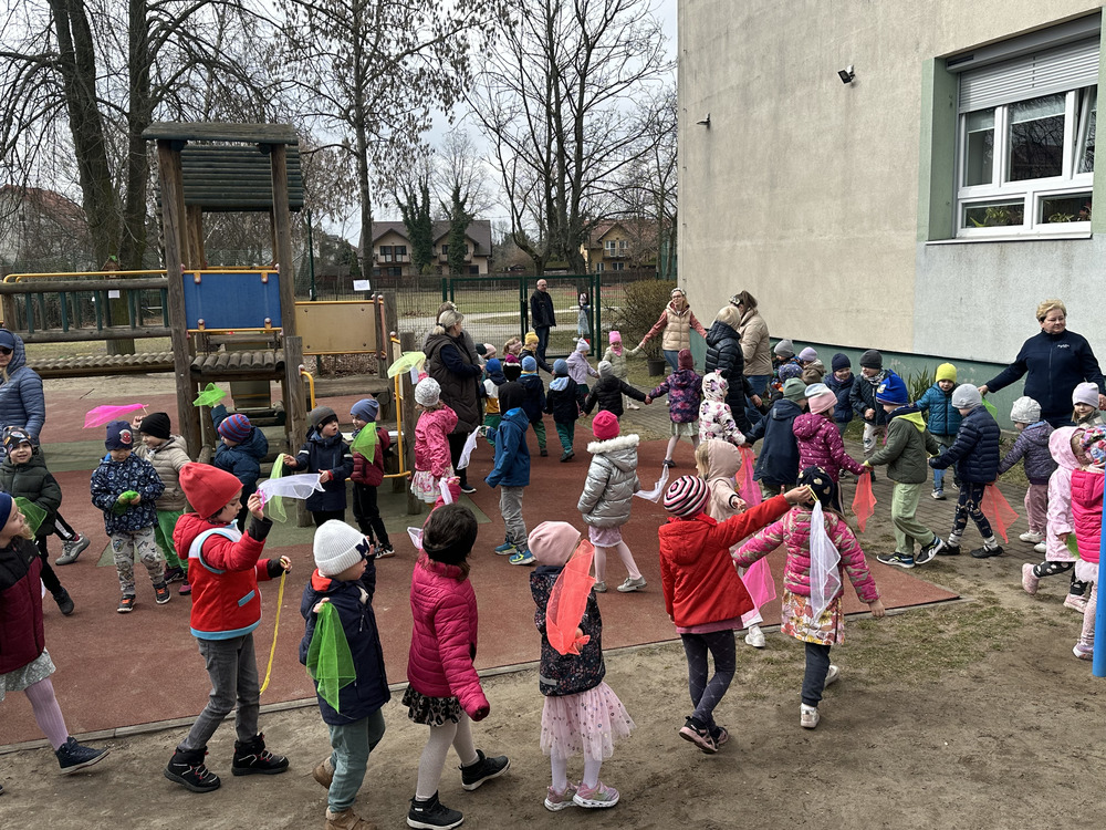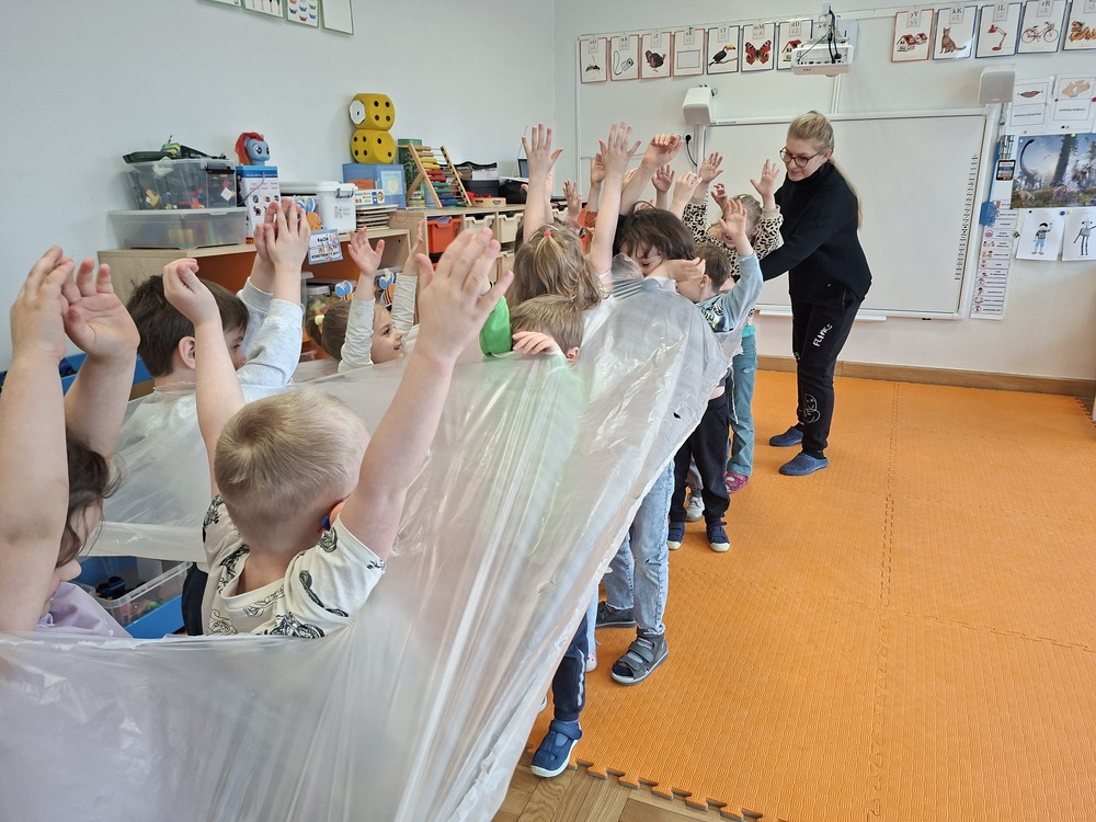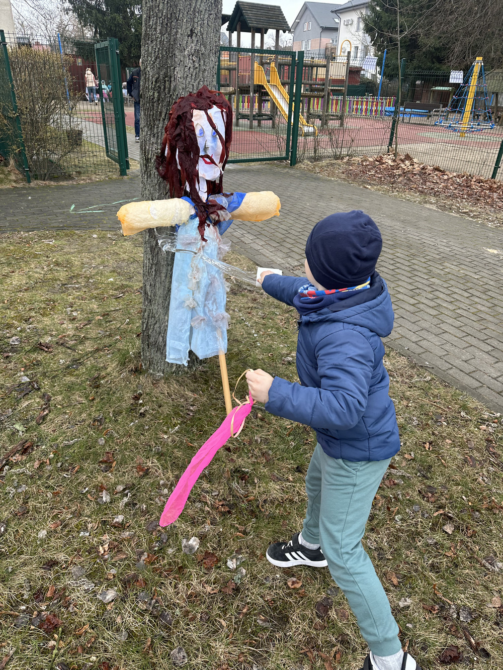 Z okazji pierwszego dnia wiosny zorganizowaliśmy grę terenową, która połączyła aktywność fizyczną z rozwiązywaniem zagadek. Uczestnicy brali udział w różnych zadaniach ruchowych i logicznych, rozwijając współpracę oraz kreatywność. Ważnym elementem wydarzenia był także tradycyjny pochód z Marzanną. Dzieci niosły kukłę symbolizującą zimę, a następnie oblewały ją wodą na znak jej pożegnania i powitania wiosny. Wydarzenie dostarczyło wszystkim dużo radości i pozytywnych emocji.