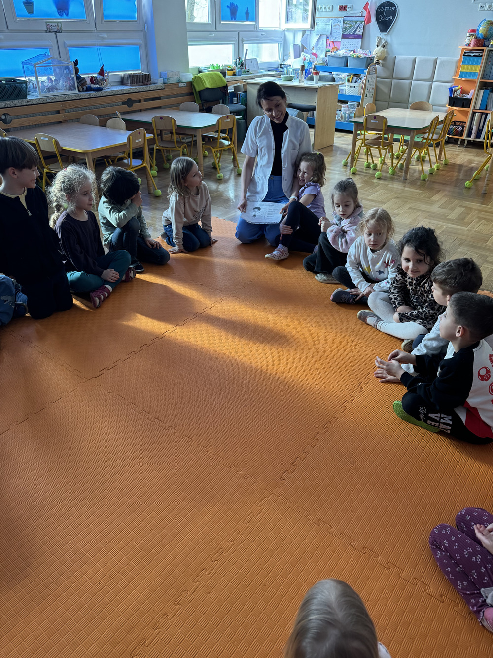 W czwartek, 9 kwietnia, nasze przedszkolaki z grup „Sówki” i „Pszczółki” odwiedziły Powiatową Stację Sanitarno-Epidemiologiczną. Dzieci wzięły udział w fascynujących zajęciach profilaktycznych, podczas których: